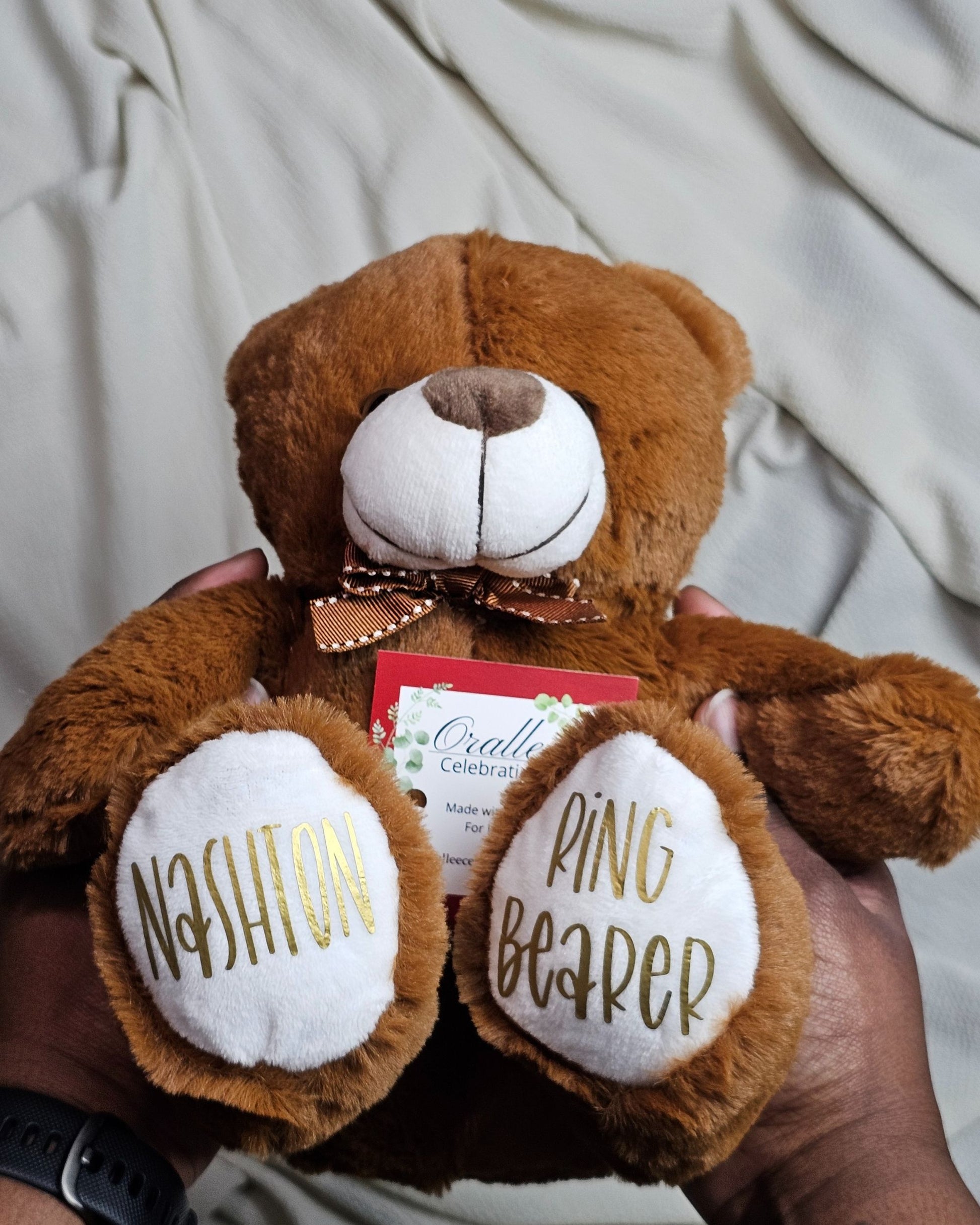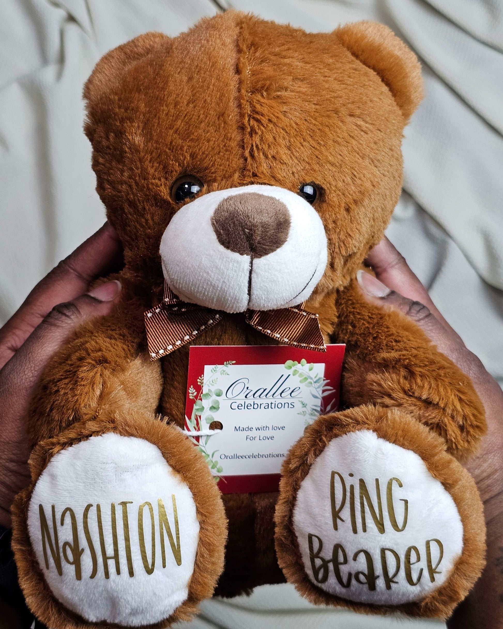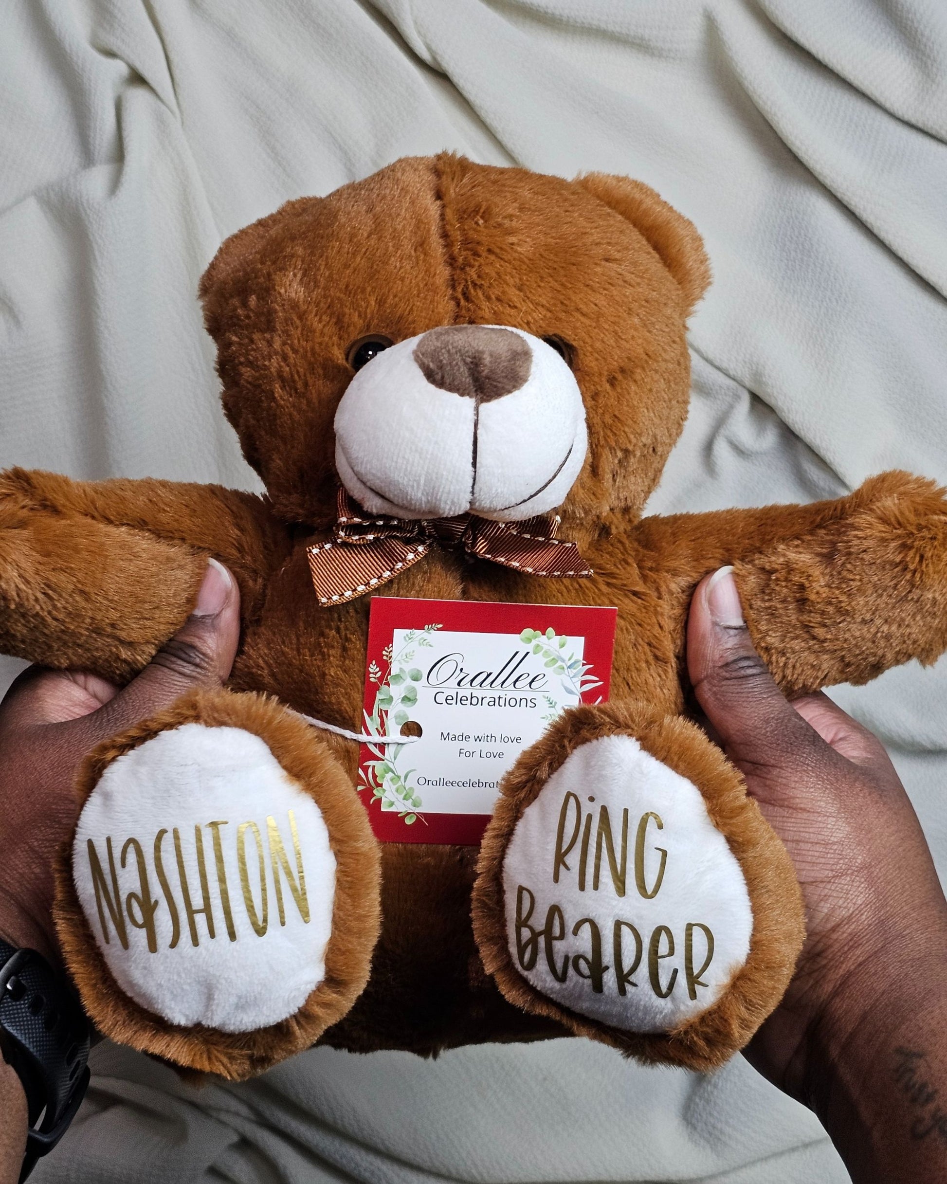 The teddy bear is about 25cm tall and the feet can be personalized on both feet
